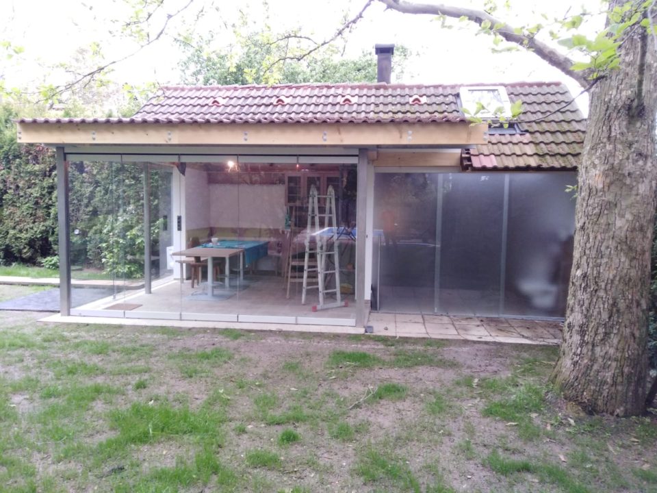 Závěsná skleněná markýza – táhla Bartosini, sklo bezpečnostní lepené – kombinace TVG/ESG