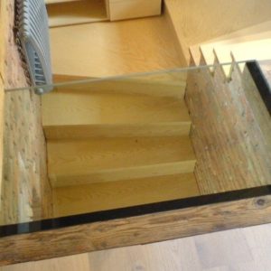 V rodinném domě si zákazník přál dodat pochozí sklo i s montáží v místě podesty. Skleněná podesta měla opticky zvětšit prostor a zajistit bezpečnost.